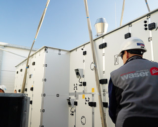 Per Hubschrauber konnte die neue Lüftungsanlage im fertig montierten, steckerfertigen Zustand direkt aufs Dach geflogen werden. Das Ergebnis: rund 40 % Kostenersparnis im Vergleich zum manuellen Transport und eine massive Zeitersparnis von drei Wochen. Der Stillstand der Lüftungsanlage betrug insgesamt nur vier Tage.